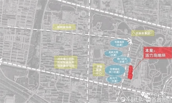 《明水古城(一期)项目——活力岛地块建设工程规划许可批后公示》显示,该项目位于明水大街以东、汇泉路以北,百脉泉景区西侧,建设用地面积为7940.16平方米,总建筑面积3591.07平方 米。