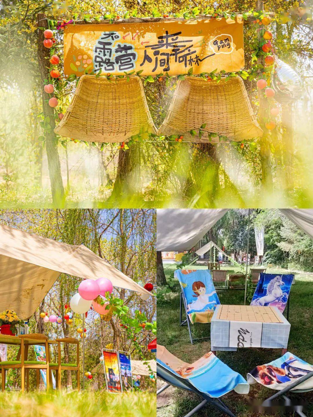 提供帐篷、成套桌椅、烧烤炉、烤炭、调料、营地灯、户外水桶、纯净水等,可以带宠物,周围有大草坪,可以玩玩飞盘,在帐篷下打麻将、唱K,快点叫上三五好友去露营吧!在这一片绿意满满的公园逍遥。