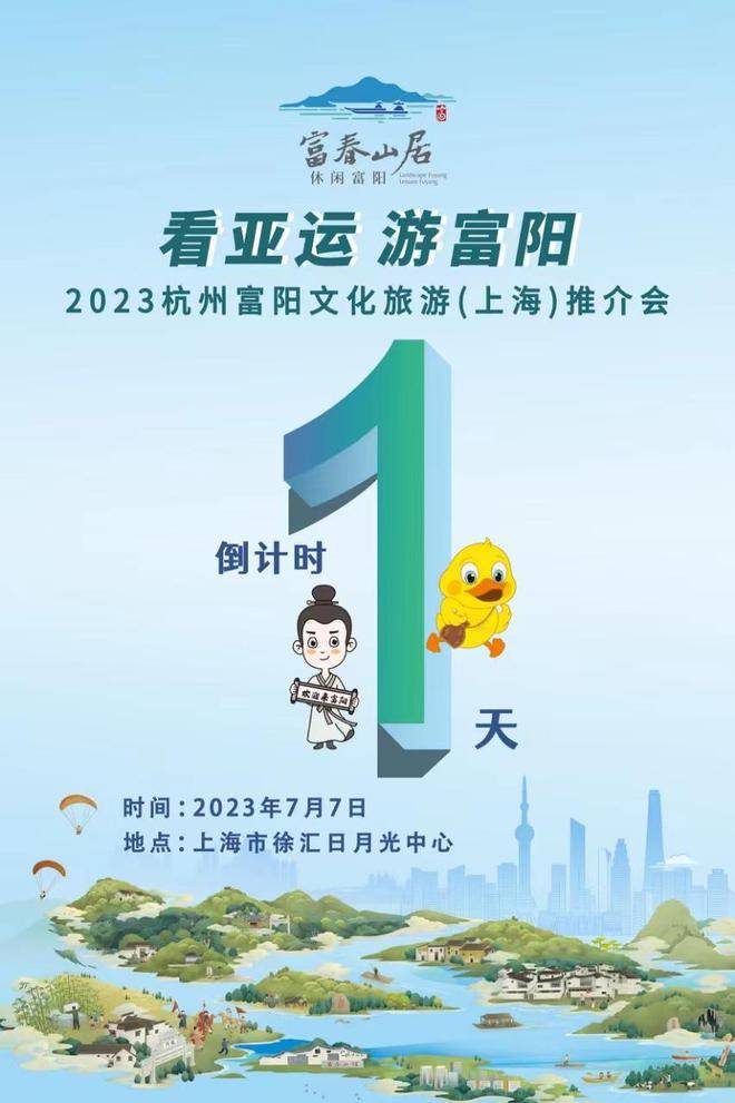 看亚运 游富阳“富春山居 休闲富阳”2023杭州富阳文化旅游(上海)推介会 也将于7月7日亮相上海市徐汇日月光中心。