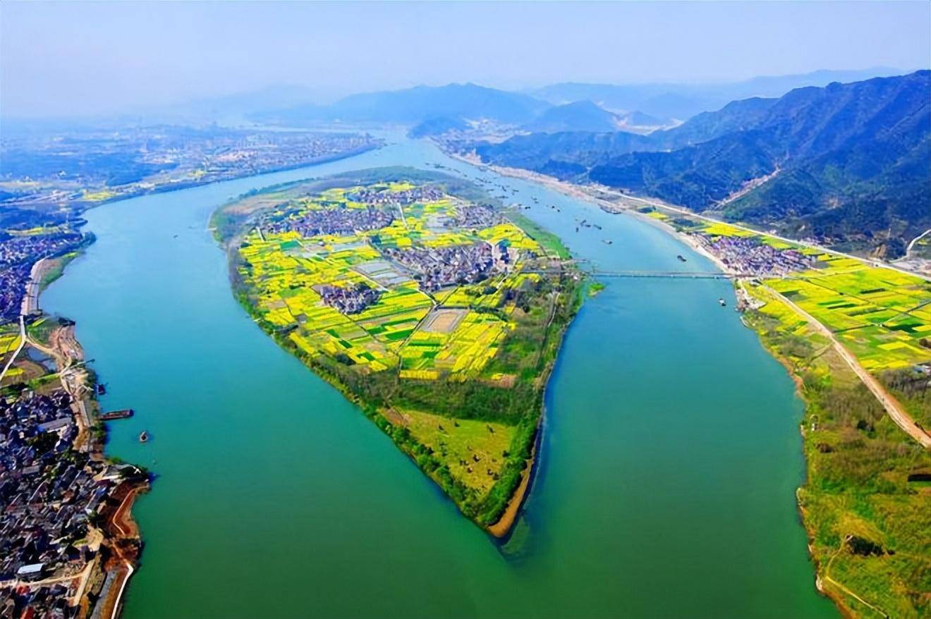 跟随平稳的江流绕过建德梅城,新安江与自南向北的兰江汇合,成为 富春江 。