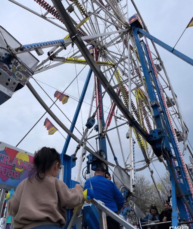 最后当然还有小朋友很喜欢坐的摩天轮啦,这次谢婷婷也有陪着女儿一起玩。她一手抱着女儿,然后另一只手拿着手机拍下这张母女合影,不过依旧没有看到神秘老公的身影。