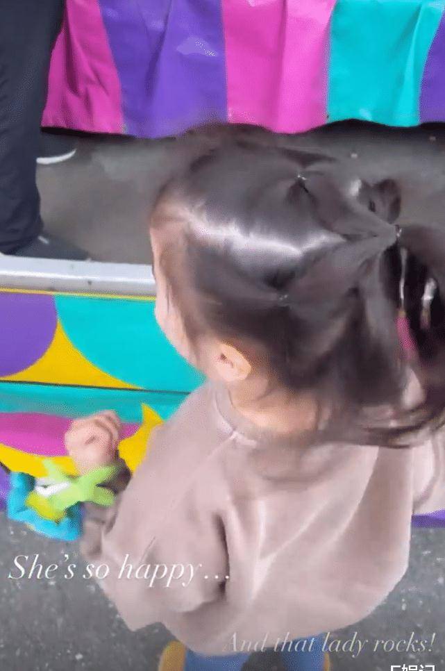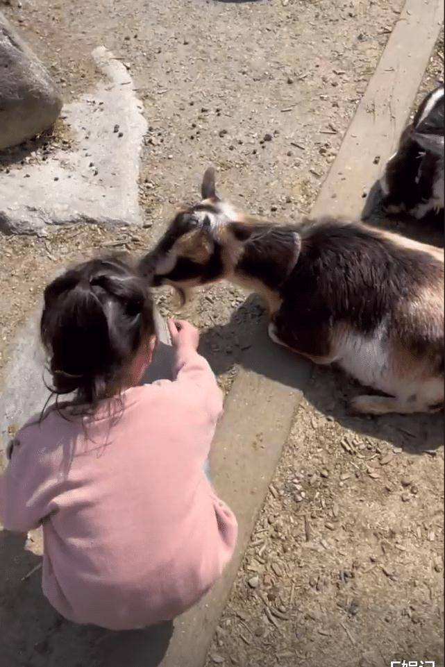 甚少更新女儿的她最近就经常晒出女儿的成长点滴,她最近才带女儿去农场看动物,晒出女儿的背影和动物的合影。