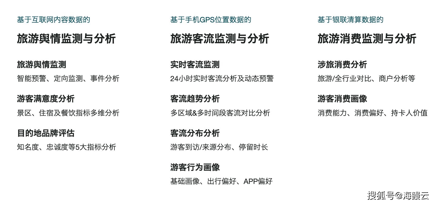 消费监测和分析可以全面解读游客消费特征,分析旅游消费发展趋势,助力旅游目的地开发旅游市场,制定有效的营销策略,发展创新业务模式。