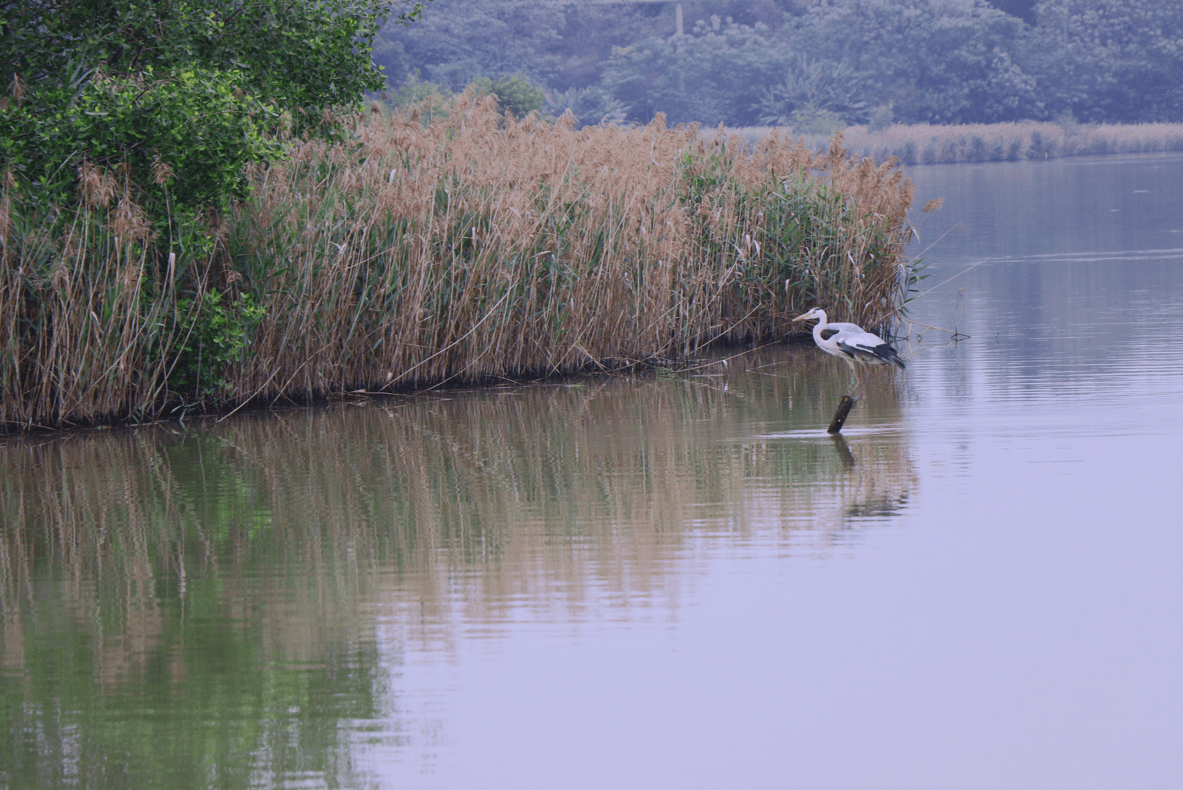 在这里,你可以看到独特的湿地景观,还可以赶在候鸟迁徙尾端,看到一些还没有飞走的白鹭、苍鹭等保护鸟类。