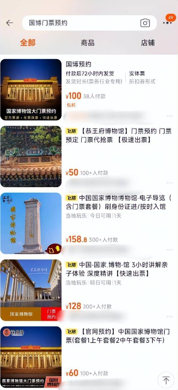 在电商平台搜索“国博门票预约”出来的结果