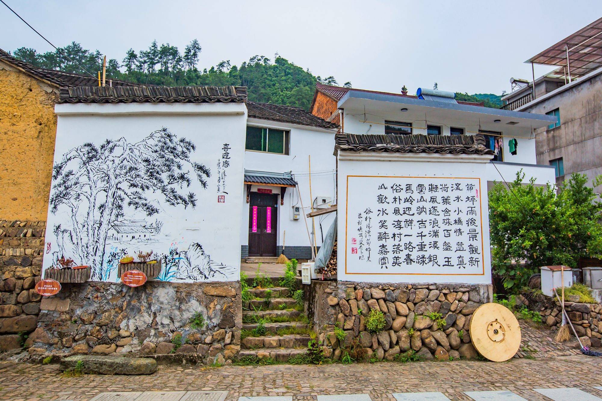 茆坪村不大,清澈的芦茨溪穿村而过汇入富春江,有了水,村子就有了灵气,那些描绘在粉墙黛瓦之上的画仿佛都开出了真的花,似有暗香浮动。