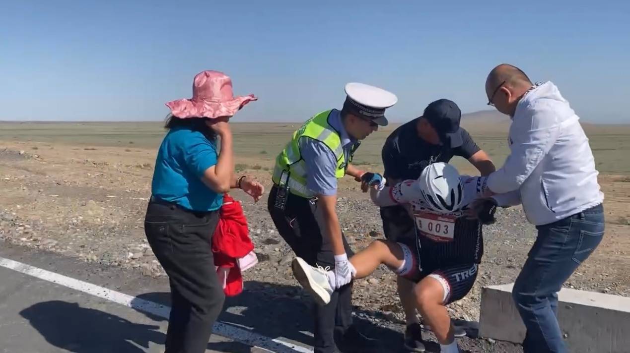 独山子公安救助受伤骑手 (薛梦婷 摄)