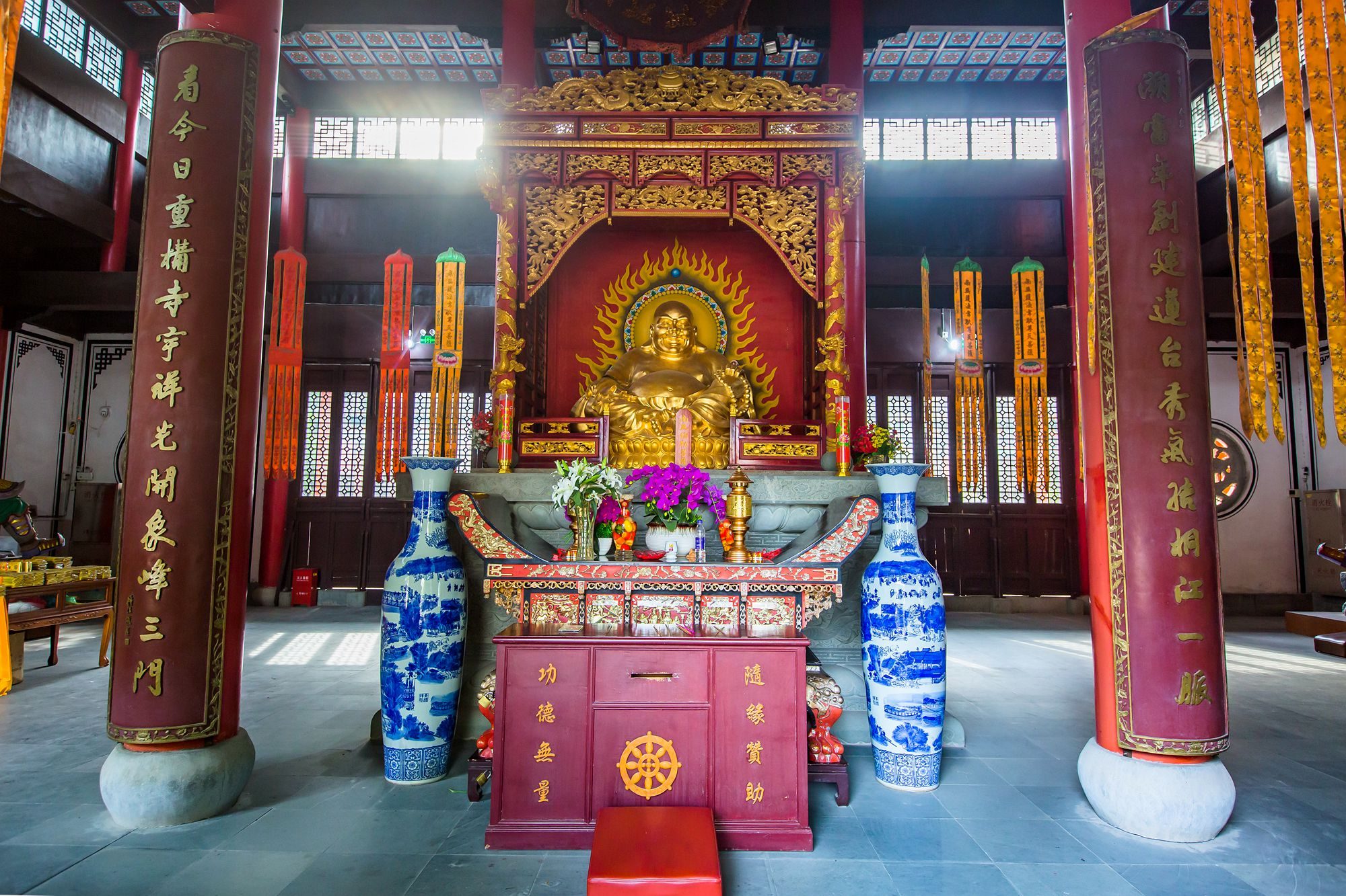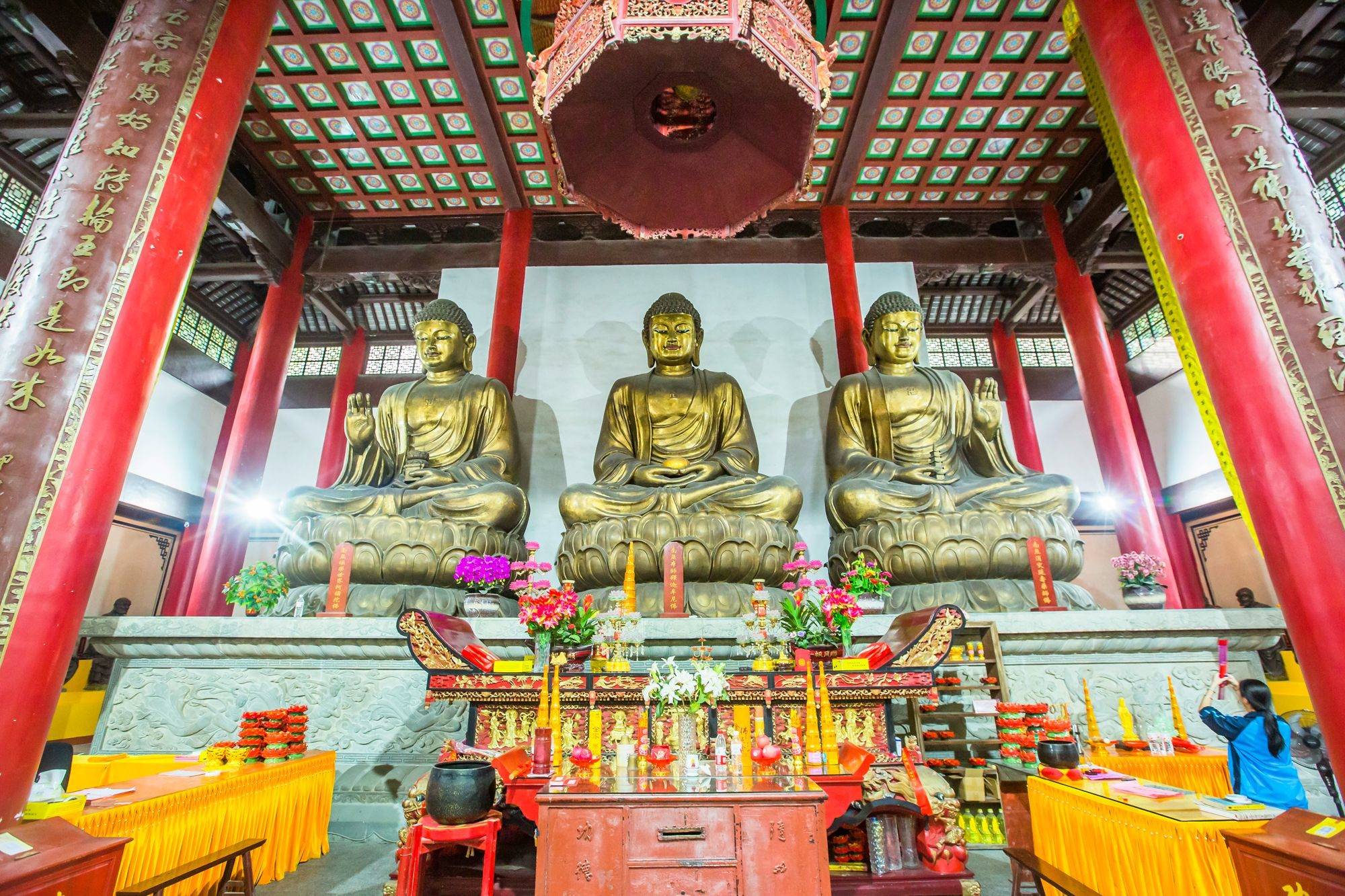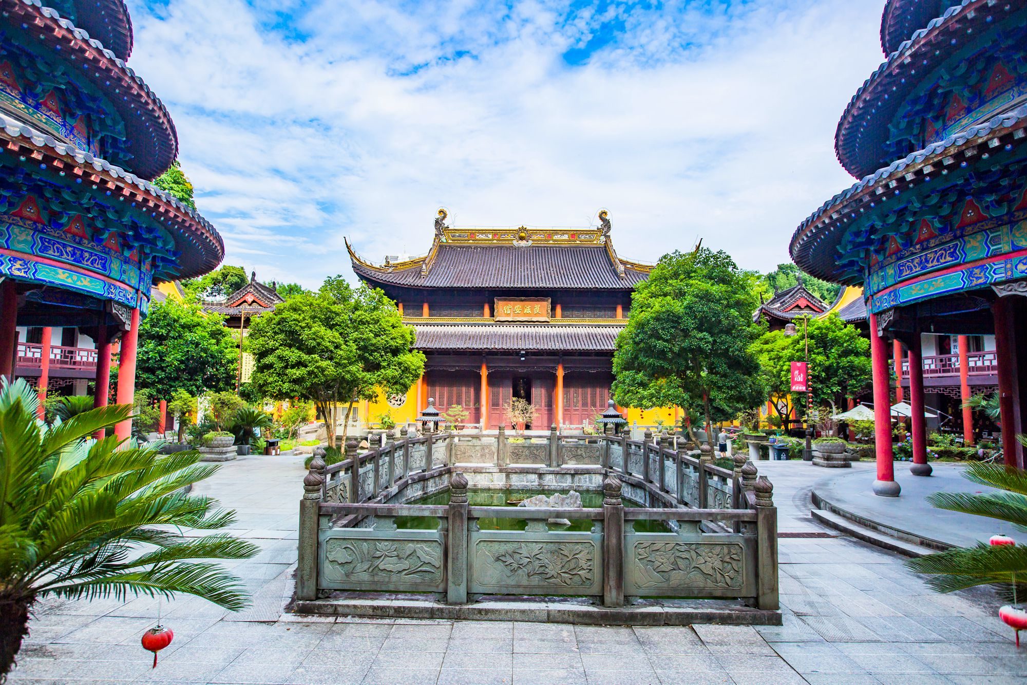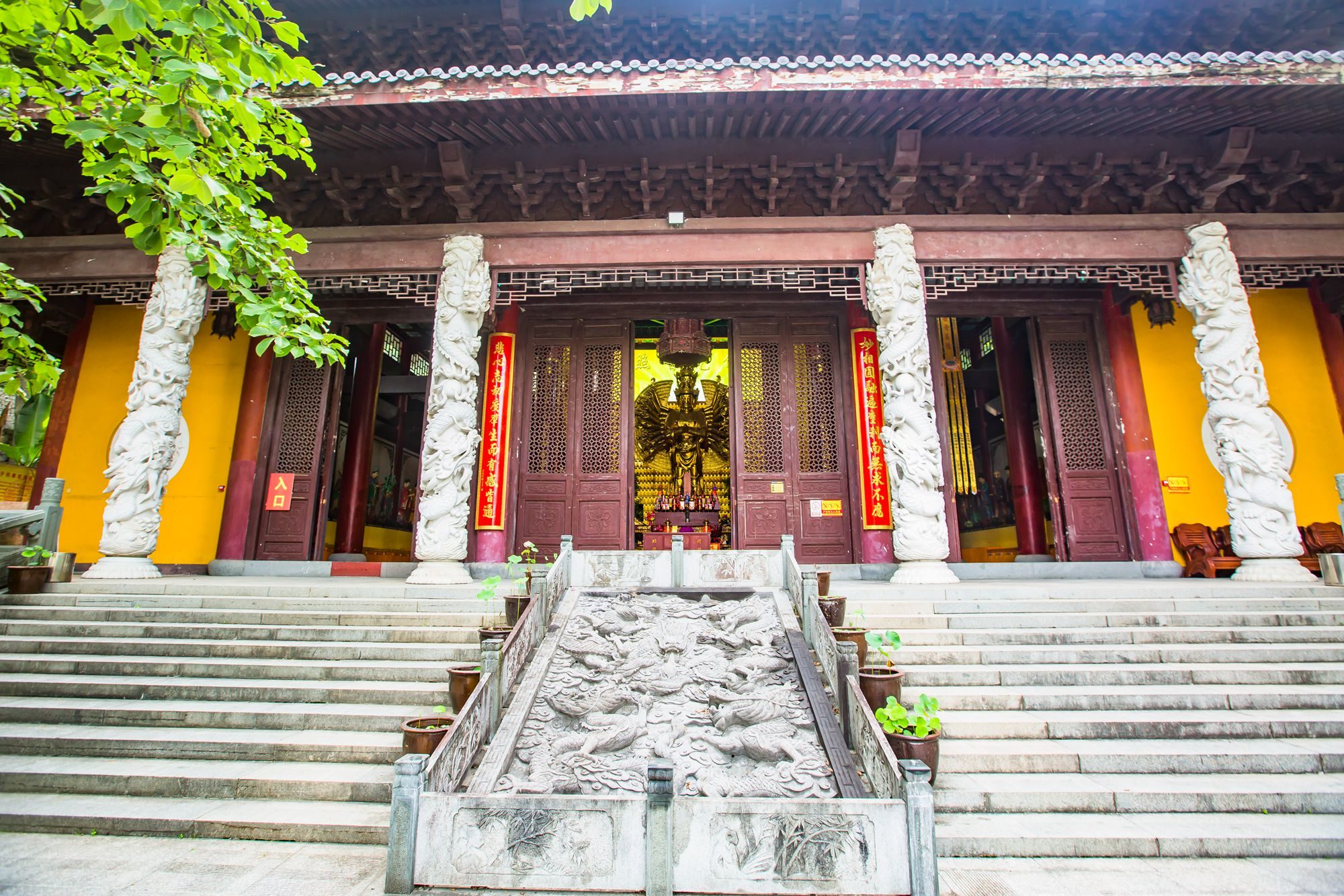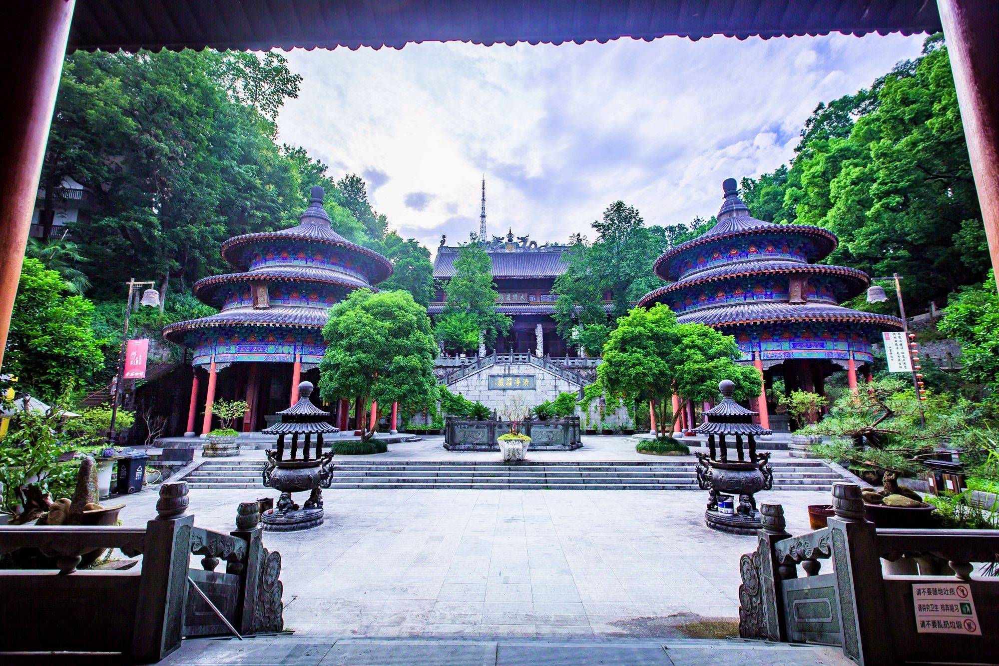从巍峨的牌坊进入,沿中轴线一路走过天王殿、放生池、圆通殿、大雄宝殿和藏经楼,主路两侧对称分布着地藏殿、祖师殿、钟鼓楼、禅室法堂,地势缓缓升高,寺内树木茂盛,清幽静谧,越往深处走便越觉得沉心静气。