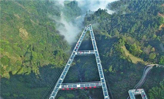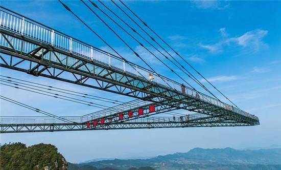 奥陶纪公园最具代表性的就是“天空悬廊”了,很多人对此不屑一顾,心想不就是一条廊道吗有什么好大惊小怪的,对此我只想说你们实在是太年轻了,你们想想,当一条廊道被架设在300米高的悬崖峭壁上,而且还是全时尚的,那就算是一条再普通的廊道也会让人心惊胆跳吧?小编在走上去之前也是跟你们一样的想法,不过后来还是被朋友们抬下来的,太丢人了!