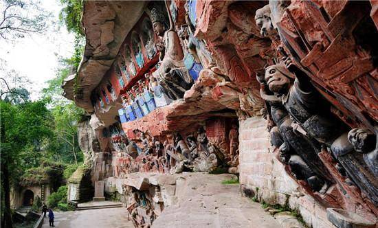 大足石刻是距今颇为遥远的唐宋时期的宗教摩崖石刻,比较了解历史都无小伙伴就会知道,这个时期的佛道儒三教并存而且互相影响,大足石刻就很好地反映了这种现象,它以佛教石像为主,兼具道教和儒家石像,当小编真正站在石像底下的时候整个人都惊艳了,真的很佩服古人的智慧和技术,在山峦间建造这么庞大的石像放在今天都是一个难题,果然信仰的力量真的很强大啊!