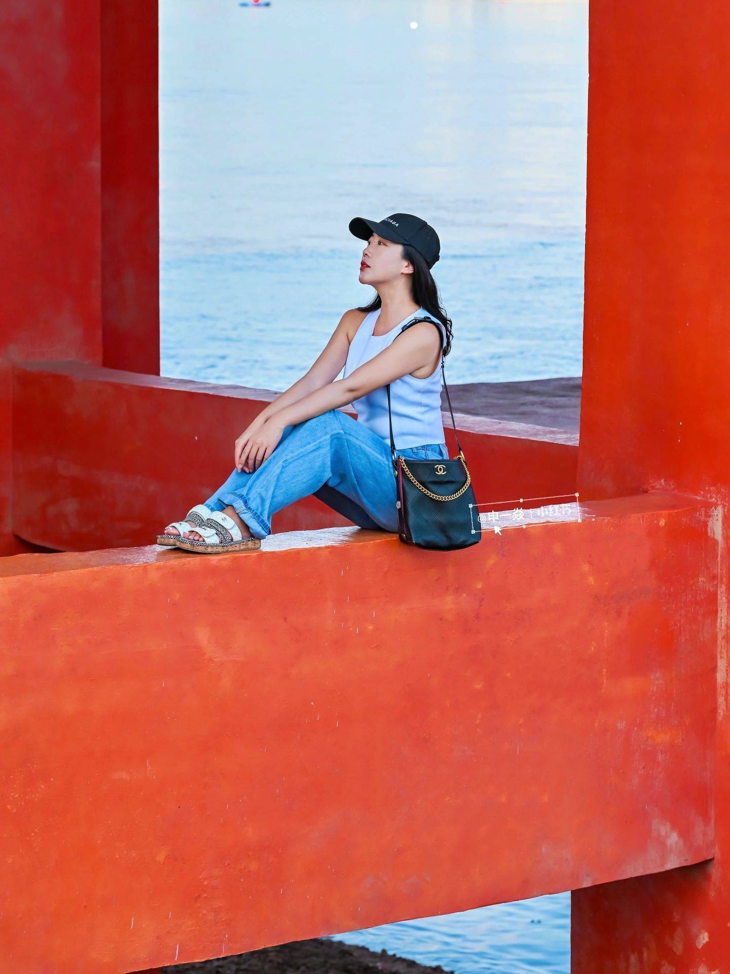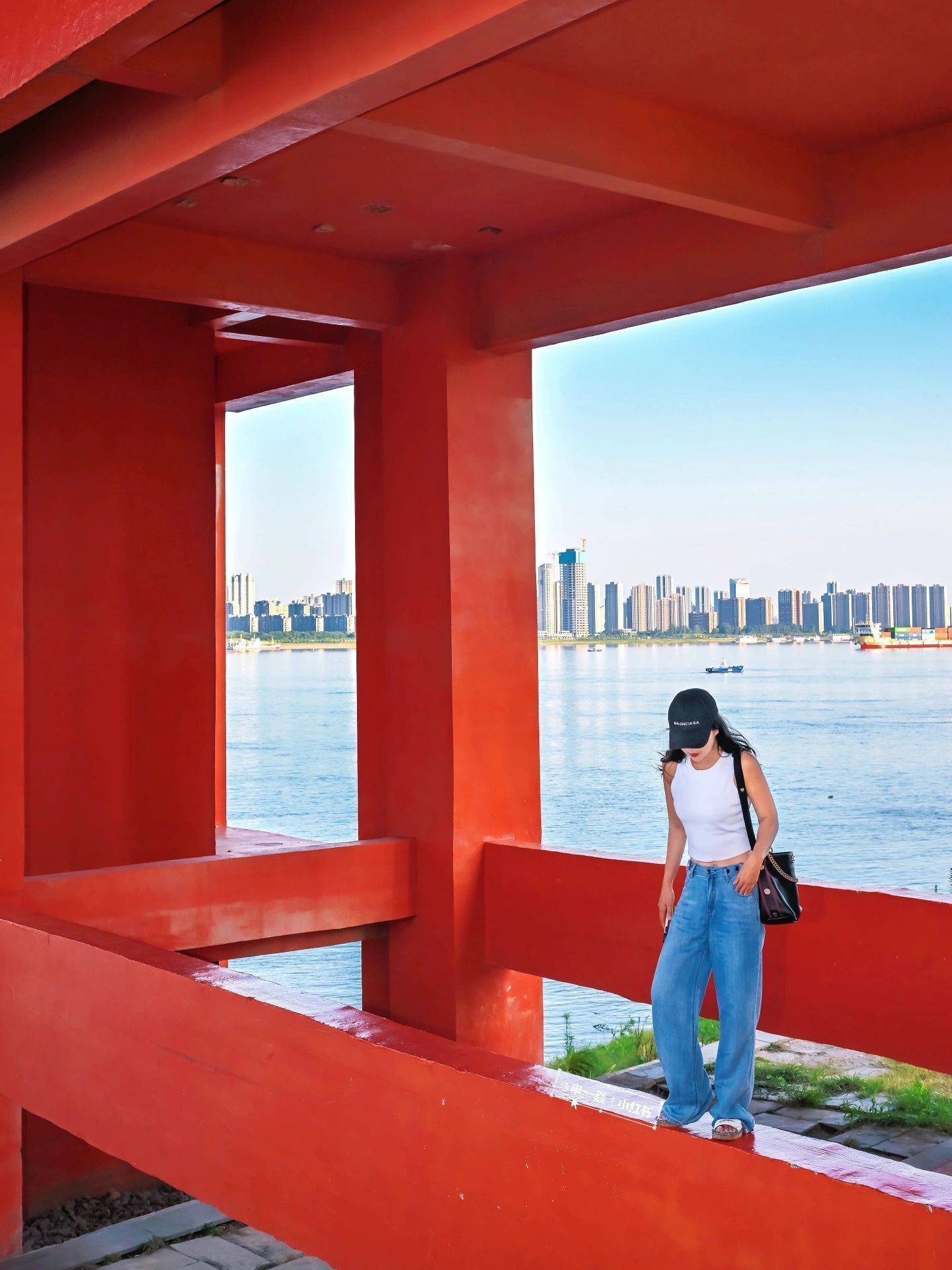 - 拍摄位置:可以在桥底横梁处站立或坐下,拍摄两侧桥体构成相框的画面;在桥底右侧的草坪处拍摄桥身侧面和倒影;在桥上人行道内侧坐在栏杆上拍摄;在桥上人行道外侧趴在栏杆上拍摄人像横图;在桥底正下方的斜坡处取景身后方框;在桥底正中间拍摄桥体的延伸感。