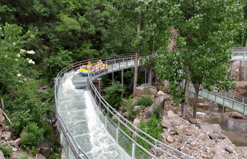 承德清河源景区依托清河口两岸群山的秀丽风光,建造清河源高山峡谷漂流,秉承着“高起点规划,高标准设计,高质量建设”的原则,漂流全长约5公里,落差近280米,是高山与峡谷两种不同体验一同实现的漂流。同时在河道上建有近百米长“水下暗河漂流滑道”(时空隧道)、240米长的360°悬空玻璃回旋滑道、面积达300多平方米的互动水战场及其他水上互动项目(银龙飞瀑、翻水桶阵、滴水古桥、迷雾穿越等)。