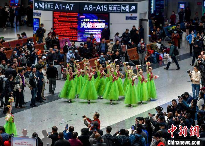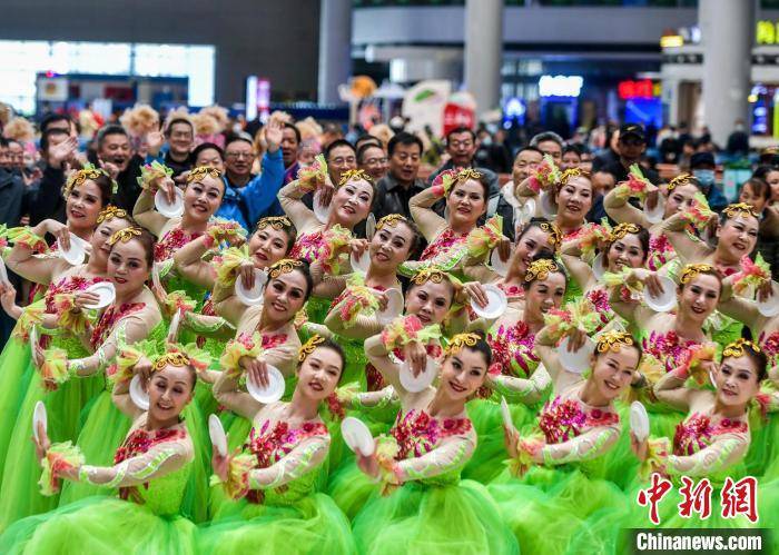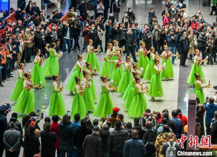 一场“快闪”活动在新疆乌鲁木齐高铁站举行。 刘新 摄