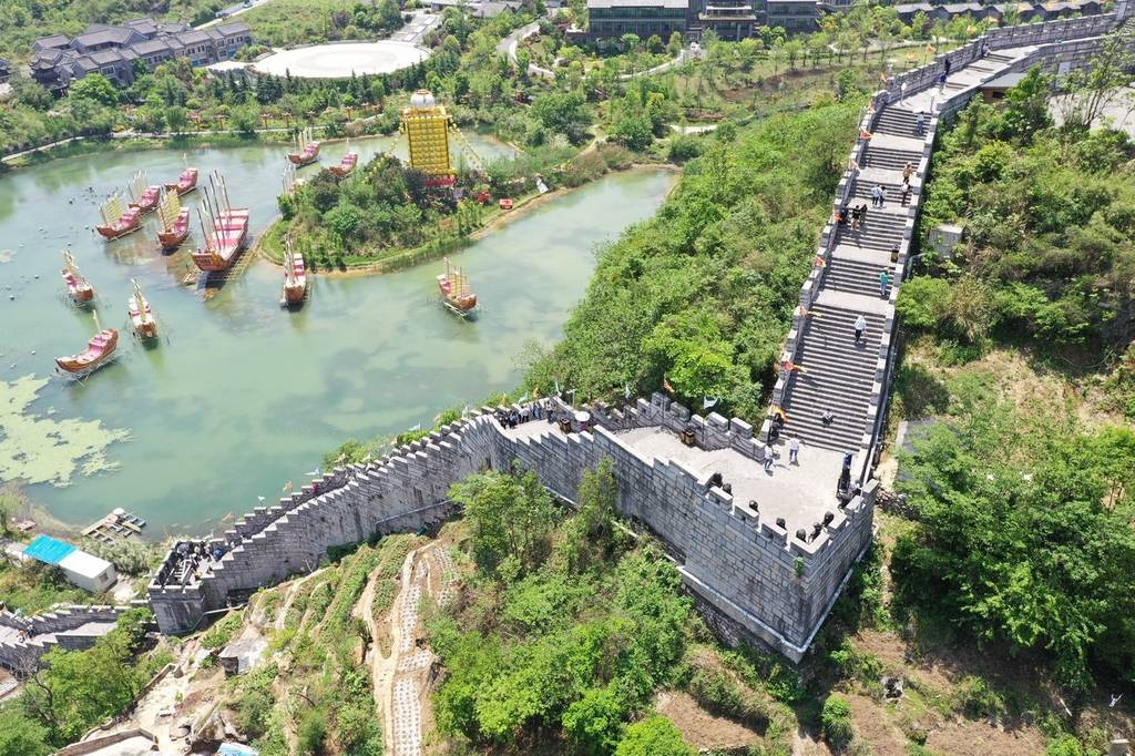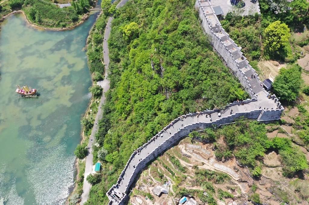 空中俯瞰,这座“南方小长城”依山傍峡、呈盘虬卧龙之势,将整座古镇盘桓围绕。
