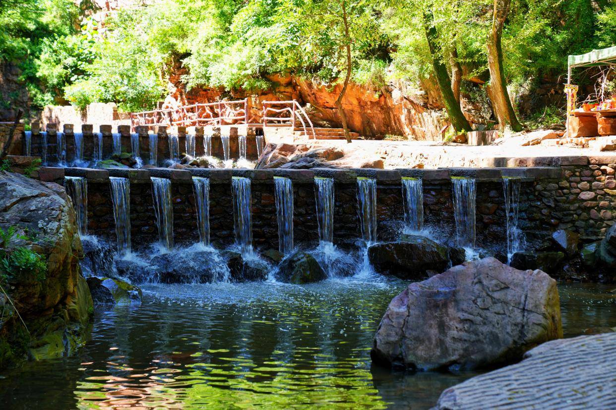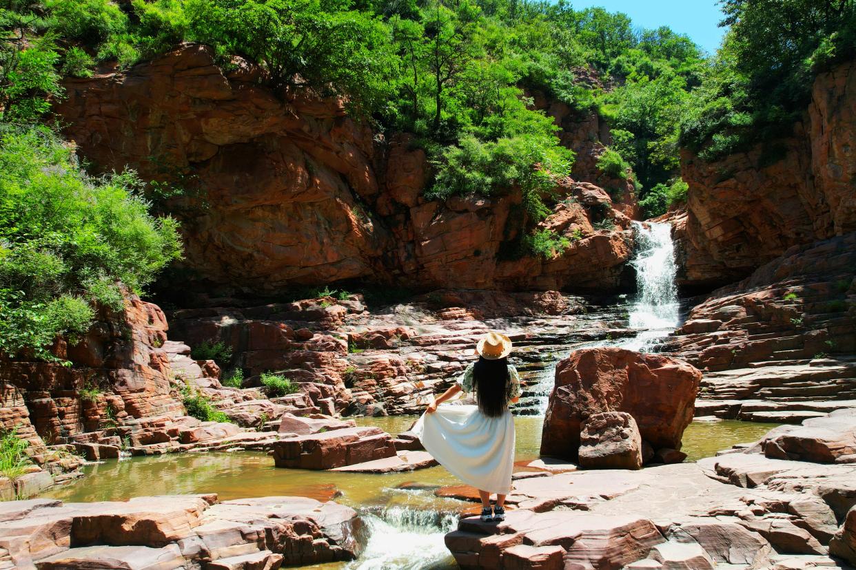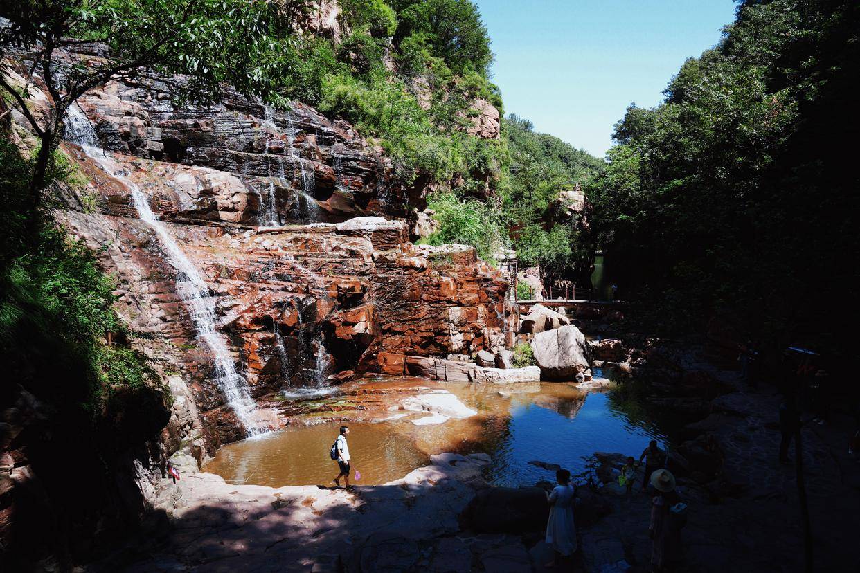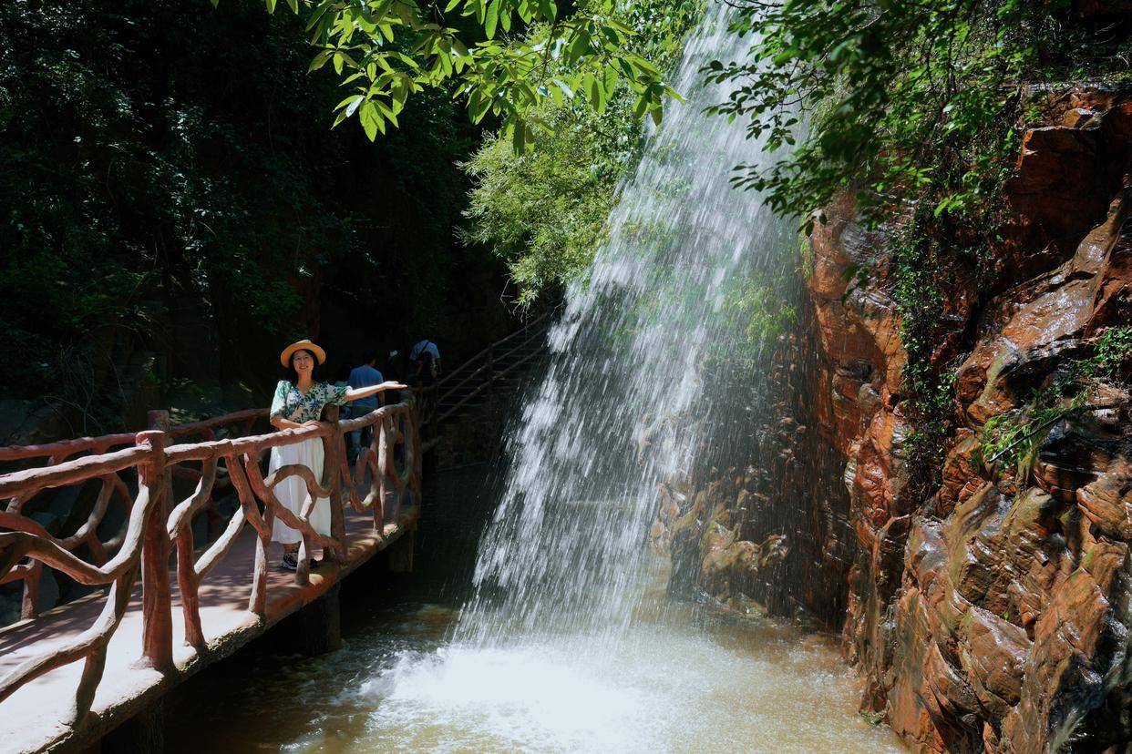 绿意葳蕤的峡谷,总是充满了惊喜的际遇,沿着伏羲山红石峡的蜿蜒山路,慢慢地边走边看,欣赏奇特的大自然风光,伏羲山是嵩山东北向的余脉,东西绵延50多公里,地势险要的伏羲山大峡谷,唯美浪漫的环形玻璃栈道,还有独特的丹霞地貌,都让伏羲山与众不同,而夏天喜欢清凉舒爽的体验,就一定要来伏羲山大峡谷戏水。
