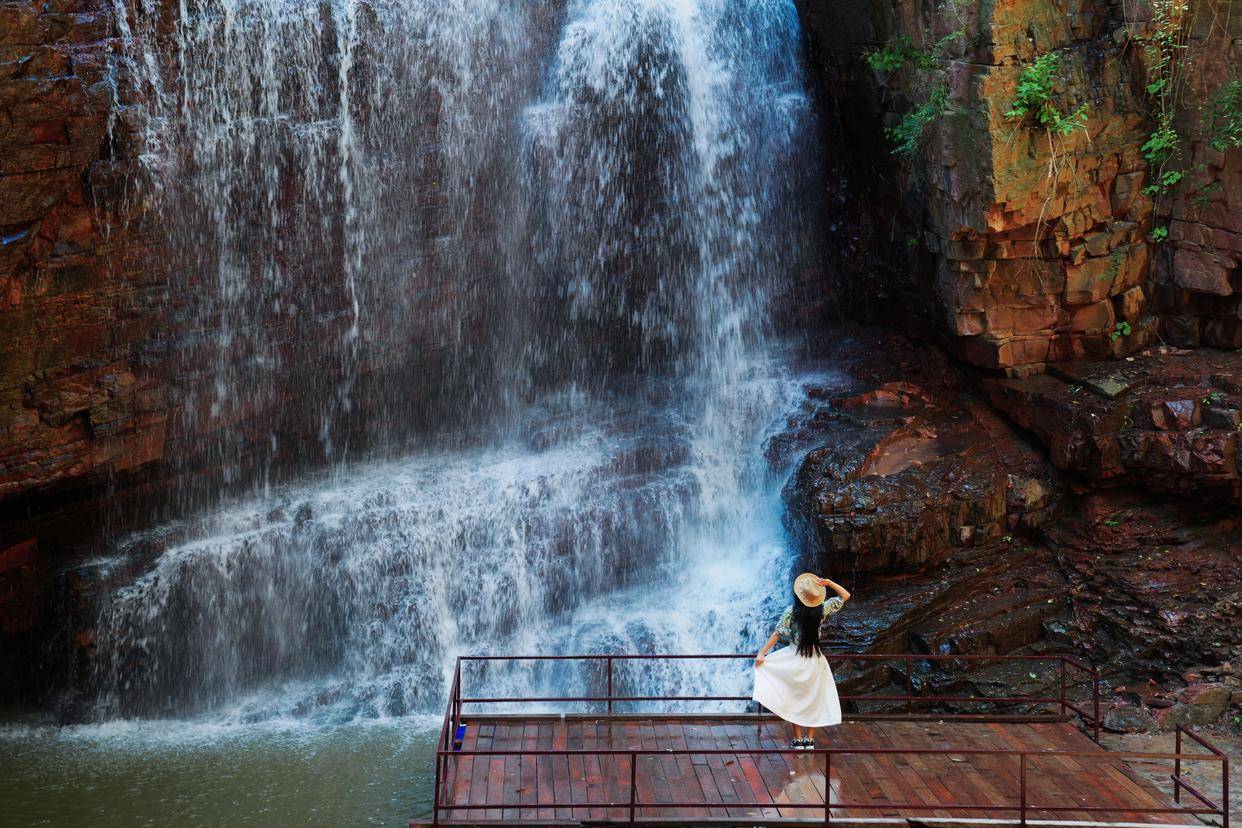 伏羲山大峡谷的流泉飞瀑,十分适合拍摄仙气飘飘的照片,穿上飘逸的白裙子,或者汉服会十分出彩,现在瀑布前面的观景平台,就是我们出片的最佳机位,张开双臂,清凉的风扑面而来,水珠飞溅,这一刻,真心想让时间慢一点再慢一点。
