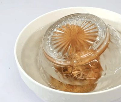 1、表面清洗、进行第一泡。很多人在这一步就已经败下来了,以为猴头菇就这样放在水上泡着就行,这里还需多做两个工序呢。第一是把猴头菇的表面用水清洗一下,除了清理表面的灰尘,另外一个重要的作用就是增加猴头菇的湿重,尽量往下沉。虽然是这样,但猴头菇因为干货的原因很轻还是会往上浮,这时便需要加入一个碗给它施压并完全盖住,这样便能更好地泡发了。