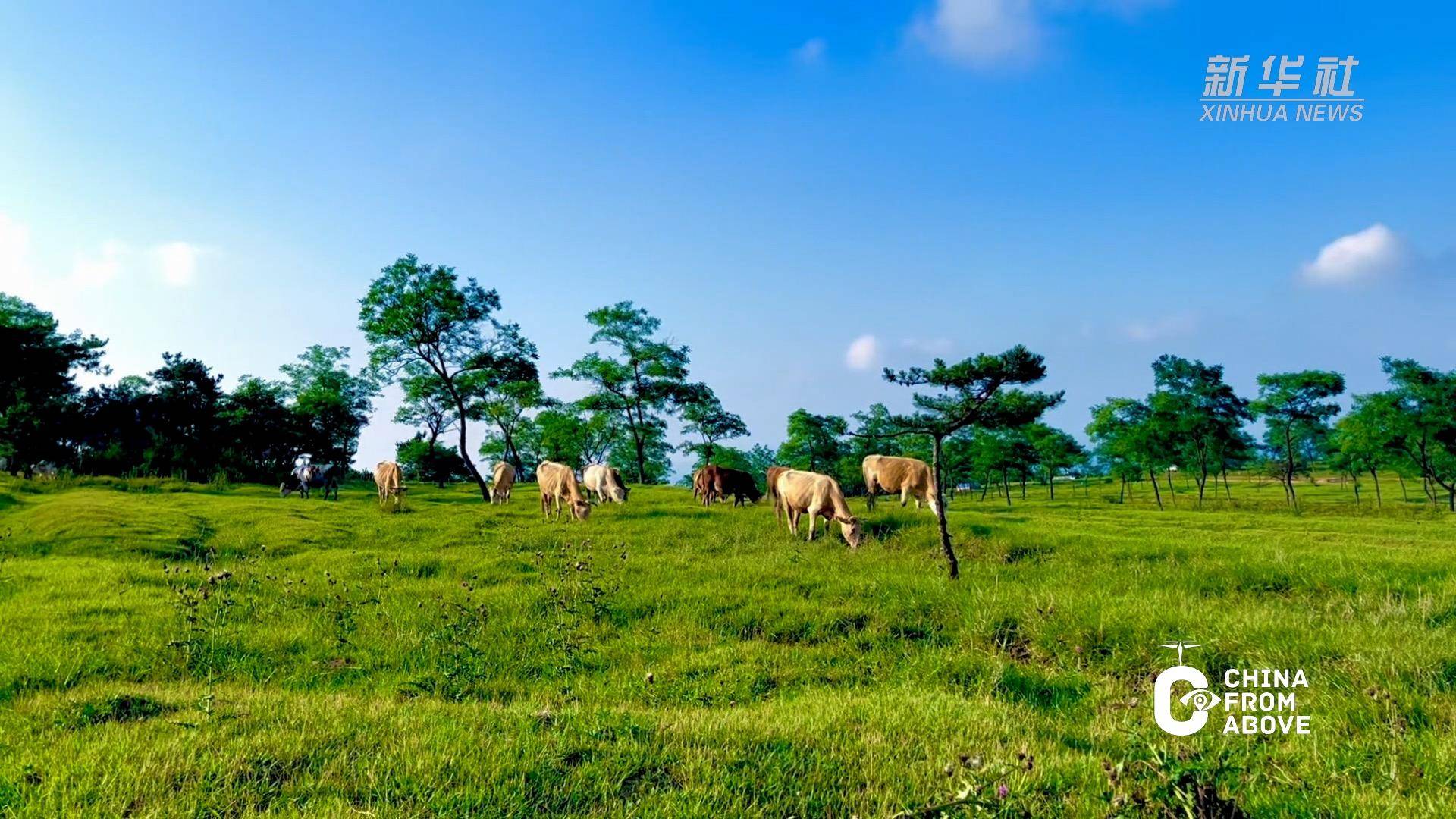 原标题:瞰中国|山东临朐:放飞云中草原 感受“诗与远方”