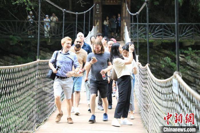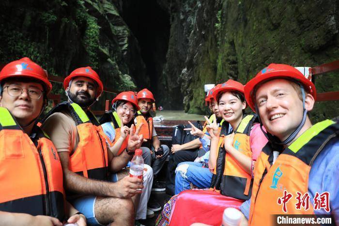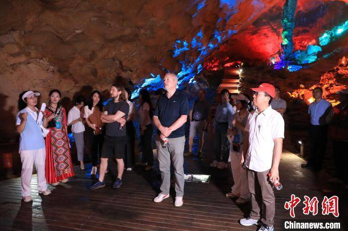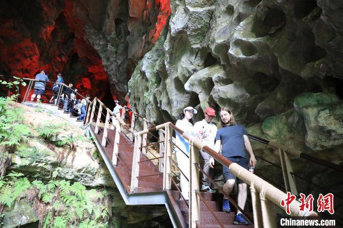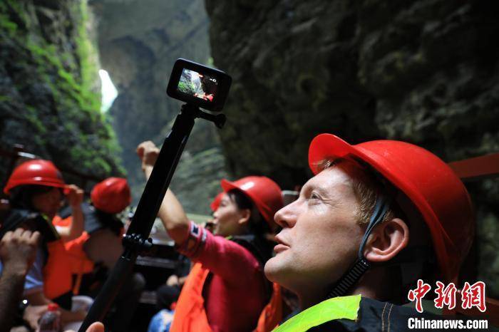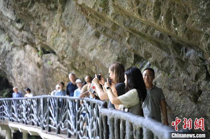 图为国际友人们6日走进重庆市黔江区蒲花暗河景区,欣赏美丽景色。 梁钦卿 摄
