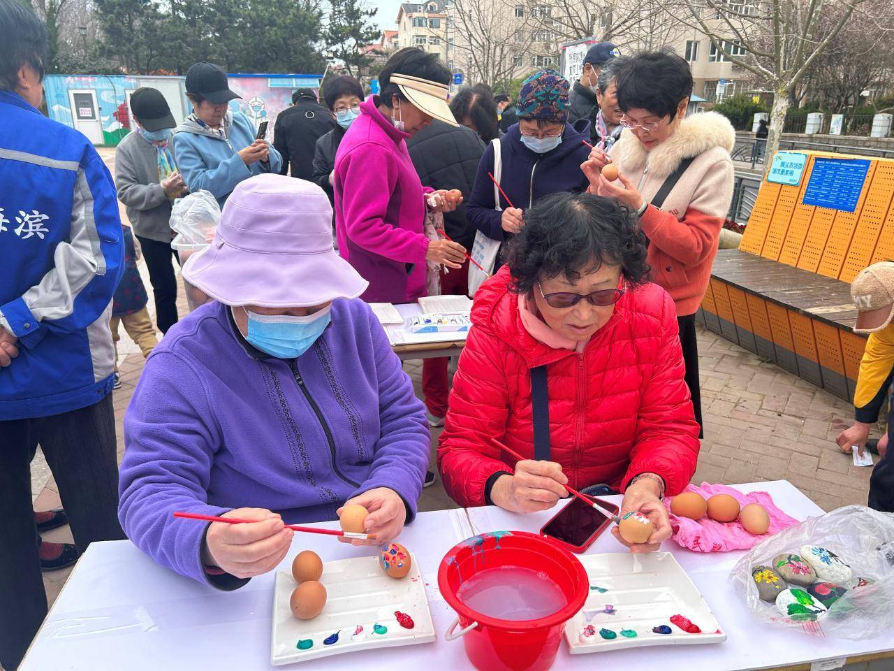 绘彩蛋环节大家认真的在鸡蛋上画出人物、动物、卡通形象等各式各样图案,小小的鸡蛋变得活泼灵动、焕然一新。大家通过大胆的想象力为彩蛋赋予神奇的魅力,表达着自己对于清明节传统文化的理解,以此寄托对春天的美好期望。