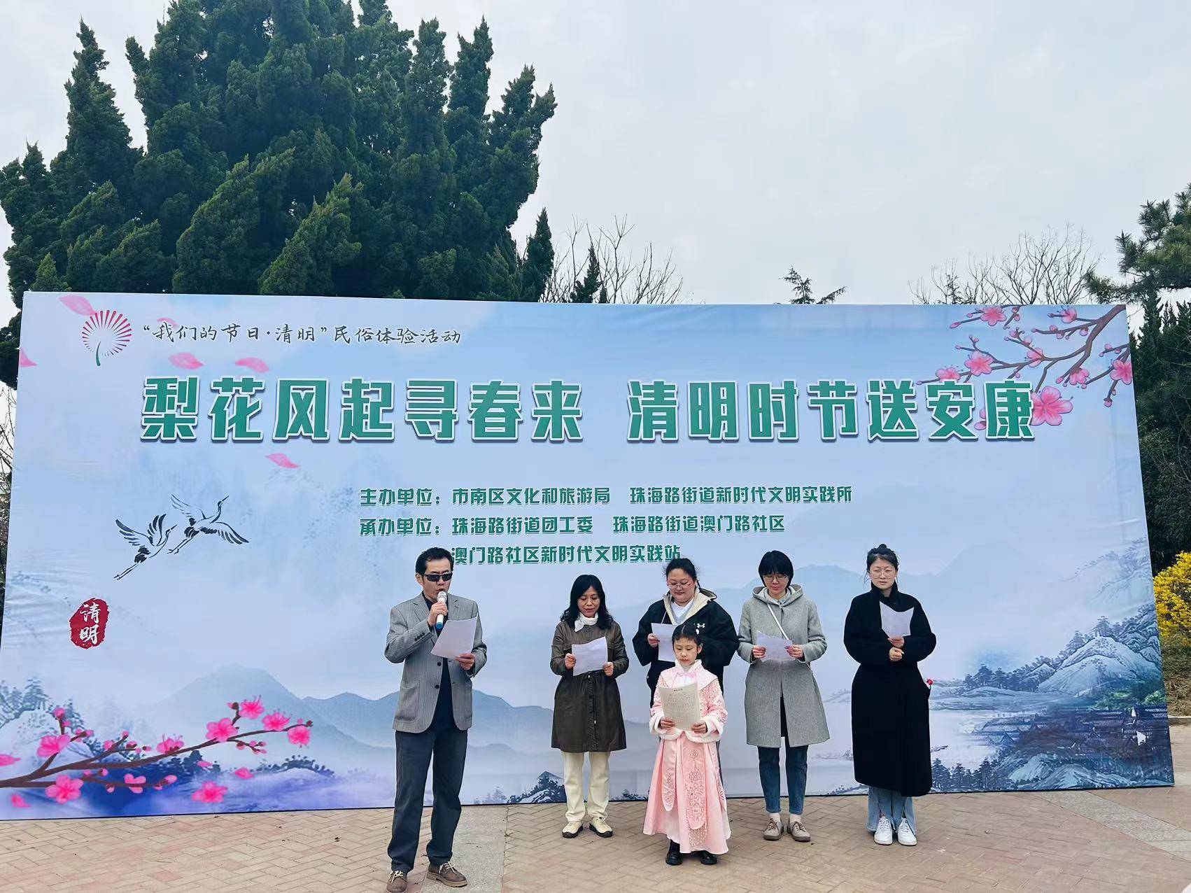 市南融媒4月3日讯 莺飞草长,春意盎然,清明将至。为弘扬文明新风,感受传统文化魅力,营造“绿色清明”的良好氛围,4月3日下午,青岛市市南区文化和旅游局联合珠海路街道办事处,在燕儿岛山公园组织开展“梨花风起寻春来,清明时节送安康---我们的节日·清明”主题活动。
