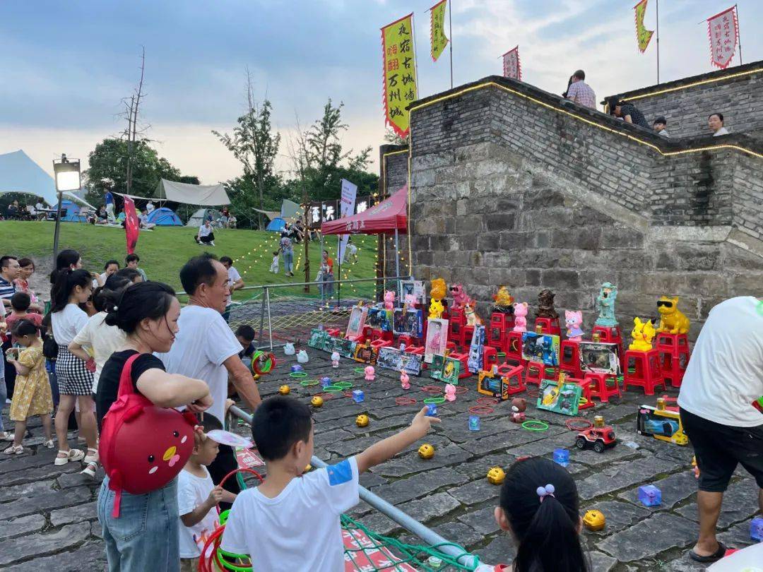 本次露营节还吸引了一大批亲子家庭市民及游客,孩子们三五成群在草坪上放肆奔跑,你追我赶,古城墙处处充斥着孩子的欢声笑语。在儿童游乐区,亲子帐篷、钓鱼、打枪、套圈等亲子活动让人眼花缭乱,吸引孩子们停留驻足,在这里来上一天游戏的狂欢。