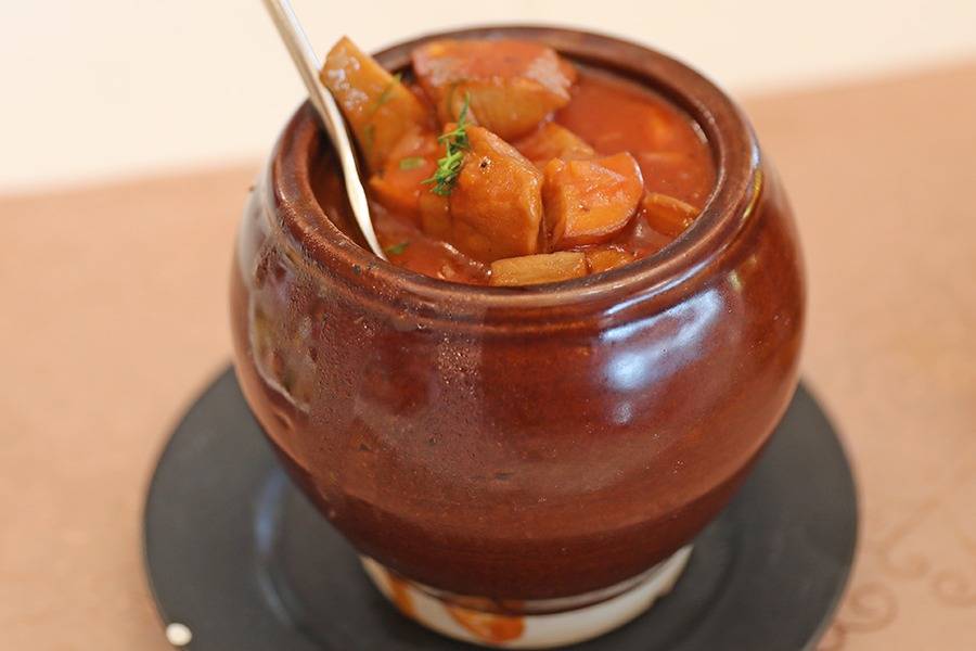 红烩牛肉是一道经典的俄罗斯菜品,来到金环餐厅绝对不能错过。红烩牛肉历史可追溯到十八世纪,由于俄罗斯气候寒冷,就需要高蛋白的食物来抵抗严寒,据传是一位史特拉戈诺夫公爵家的家厨用法国烩牛肉的烹调方式,加入俄国本土的酸奶油酱料创出了俄式红烩牛肉,其中酸奶油使烩牛肉更加香浓肉嫩,如今这道菜品也是俄式西餐厅的招牌菜,好多人都会慕名而来品尝一下,口感酸酸甜甜,有有点咸,充满了肉香和蔬果香,味道超级棒。