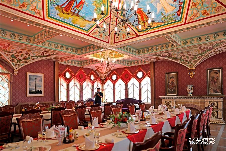 “金环餐厅”建造的由来,1913年哈巴史夫斯克博览会上的一个展览馆,展会结束就被拆除了,但伏尔加庄园却让已经消失的建筑获得重生。这里不仅有着优美浪漫的环境,还可以品尝到纯正的俄式大餐。