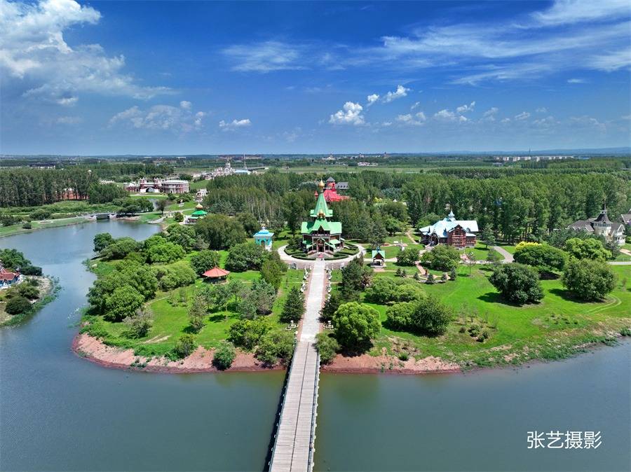 漫步在伏尔加庄园,随处可以看到圣·尼古拉教堂、彼得洛夫艺术宫、普希金沙龙、伏特加酒堡、三只熊乐园等建筑,庄园里环境清幽,风景秀丽,蕴含着天然醇朴的自然气息。有大片的园林和滩涂湿地,蜿蜒曲折的阿什河流过庄园,水连水,桥连桥,一派优美的田园风光。