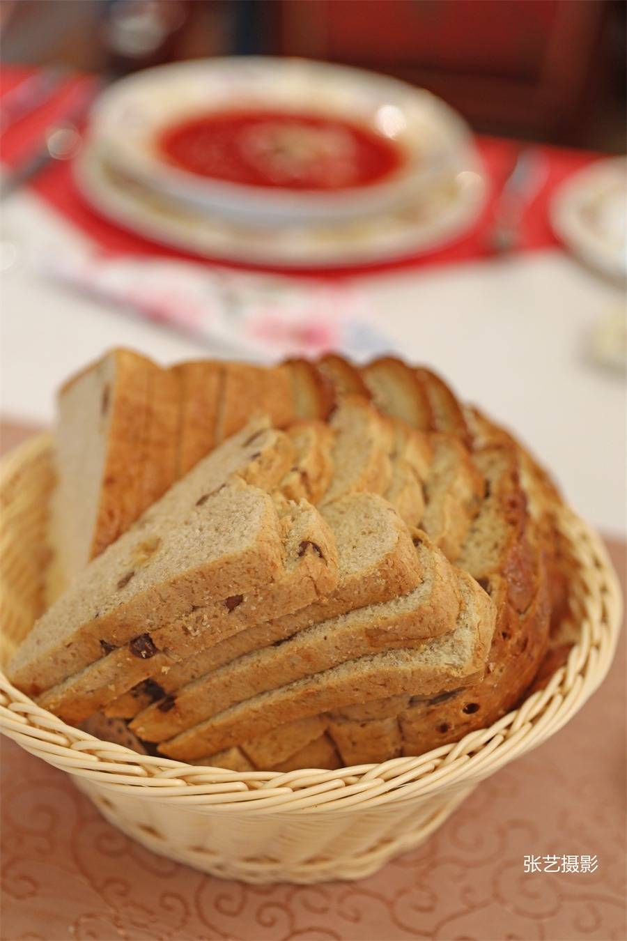 主食,俄罗斯大列巴,俄罗斯当地一种面包,一般呈圆形,体积大,配料中主要有麦芽糖、啤酒、面、盐、酵母、糖,味道具有传统的欧洲风味。