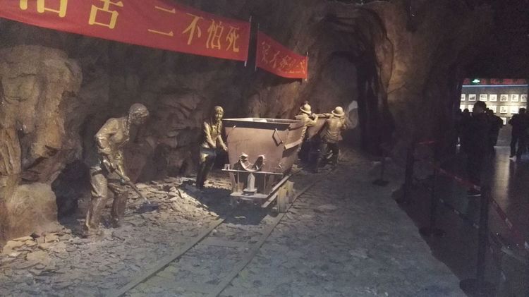 ▼馆内的雕塑展现了当年建设襄渝铁路的艰苦奋斗情景