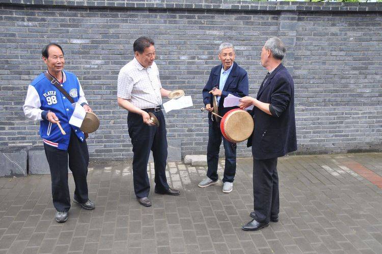 ▼为了演三句半,吴世荣战友千里迢迢把锣鼓家业从山西带到陕南