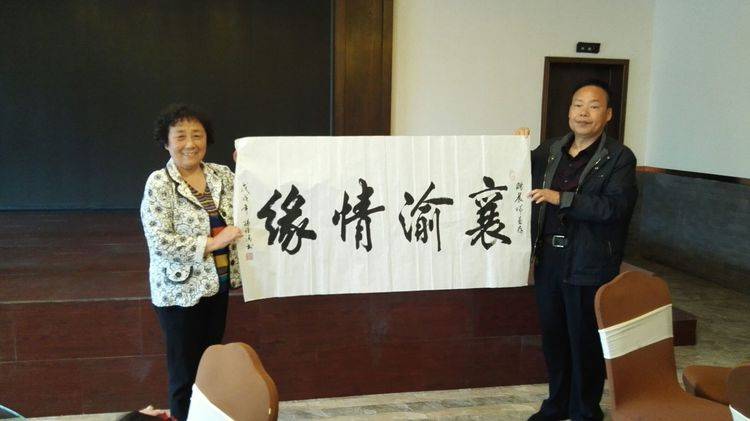 ▼孙雅清战友千里迢迢从湖北来到安康,见到48年前认识的小妹妹,并将自己写的书法作品“襄渝情缘”赠送给她