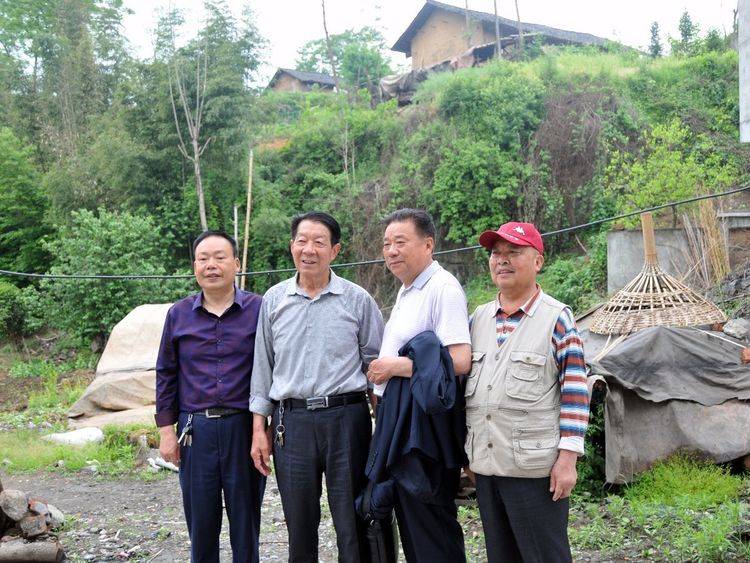 ▼当年蔡光华(左二)战友的夫人前来探亲,借住在这所房子里,他们的儿子就是在这里怀上的。这位房东(右二)曾给了他们不少照应,没想到时隔48年后,他们又见面了