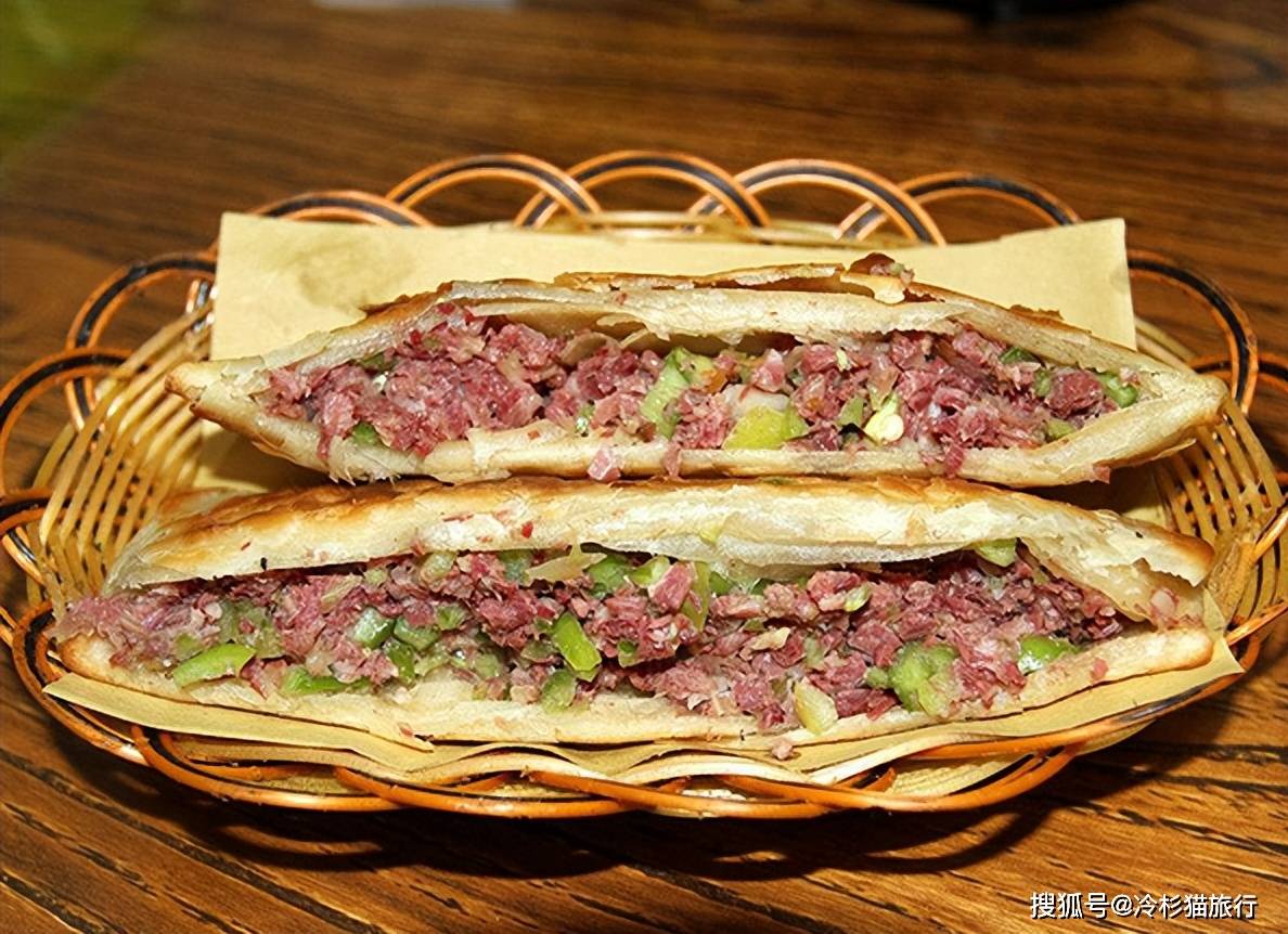 这道菜是华北地区最受欢迎的食物,起源于河北保定。简单来说,它是“肉夹馍”,只是肉是卤驴肉,馍是河北当地的火烧,颜色金黄,吃起来味道酥脆,让人停不下来。
