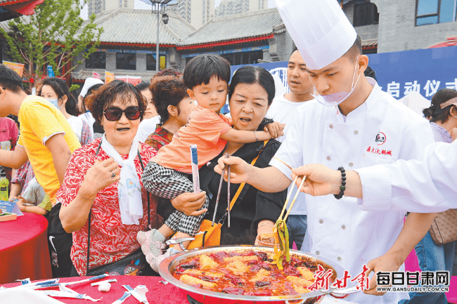 7月5日,古香古韵的兰州老街,人山人海,热闹非凡。第五届陇上美食博览会在这里盛装开幕,来自全省14个市州的100多家餐饮企业,纷纷端出自家招牌菜,盛情招待前来参加兰洽会的海内外客商,大家一起品尝美味,洽谈合作。