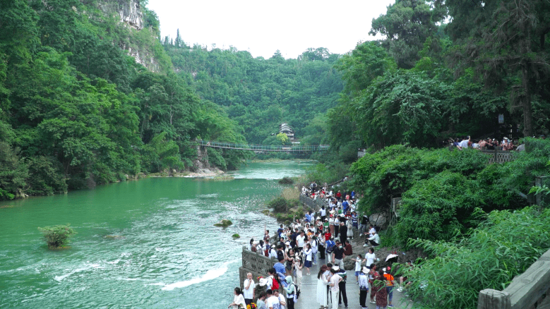 前往黄果树瀑布,感受亚洲第一大瀑布的磅礴之势。在大瀑布观景台,瀑布声势浩大、倾斜而下,滇西的客户们切实体验了一场酣畅淋漓的旅行,在升腾水汽弥漫的瀑布周围,宛如人间仙境,令人流连忘返。