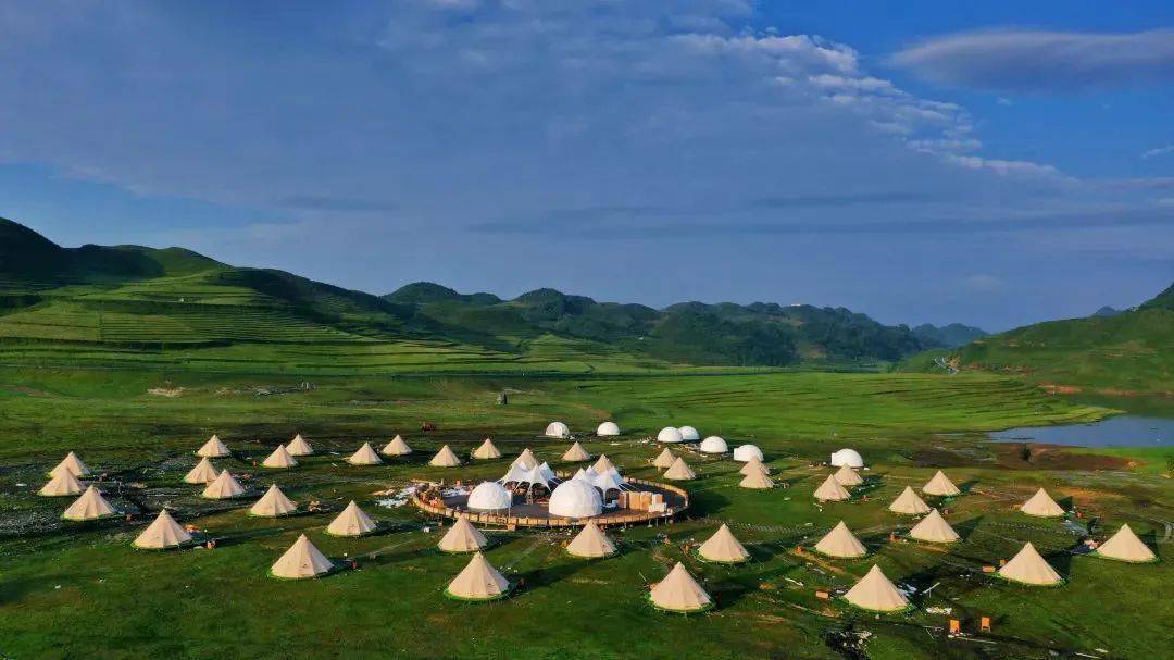 贵州之巅星空营地位于毕节市赫章县阿西里西景区大草原(二台坡景区)内,湛蓝的天空、波光粼粼的湖水畔、漫步在青翠草地上的成群牛羊,这里绝美的营地风光绝对让你不虚此行。