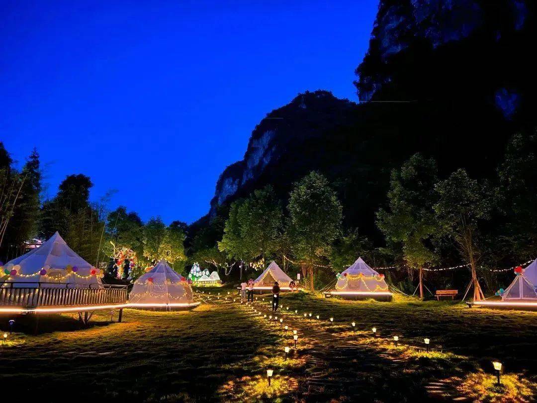露营基地距离九洞天景区船票售卖处约四百米,打开帐篷帘,便是九洞天景区的喀斯特岩溶大观。九洞天享有“中国岩溶百科全书”及“喀斯特地质博物馆”等美誉,无论是闺蜜出行、研学之旅,还是寄情山水,都是不错的选择。
