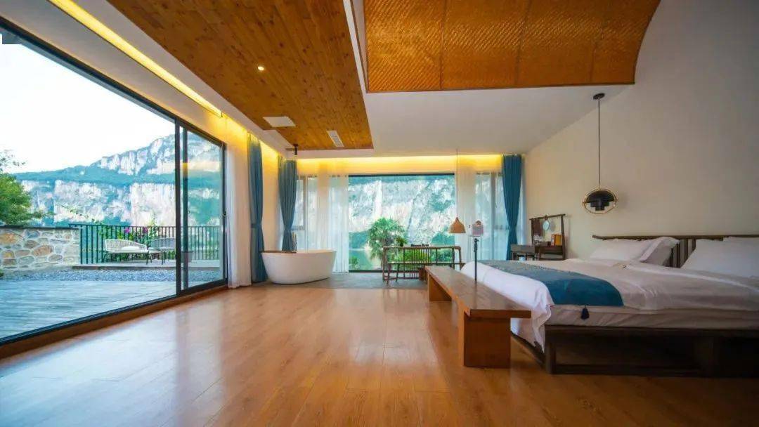 ✅推荐理由:背对陡峭高山,拥抱百里画廊的精美景观,推开窗,映入眼底的便是满眼的舒适和好心情。