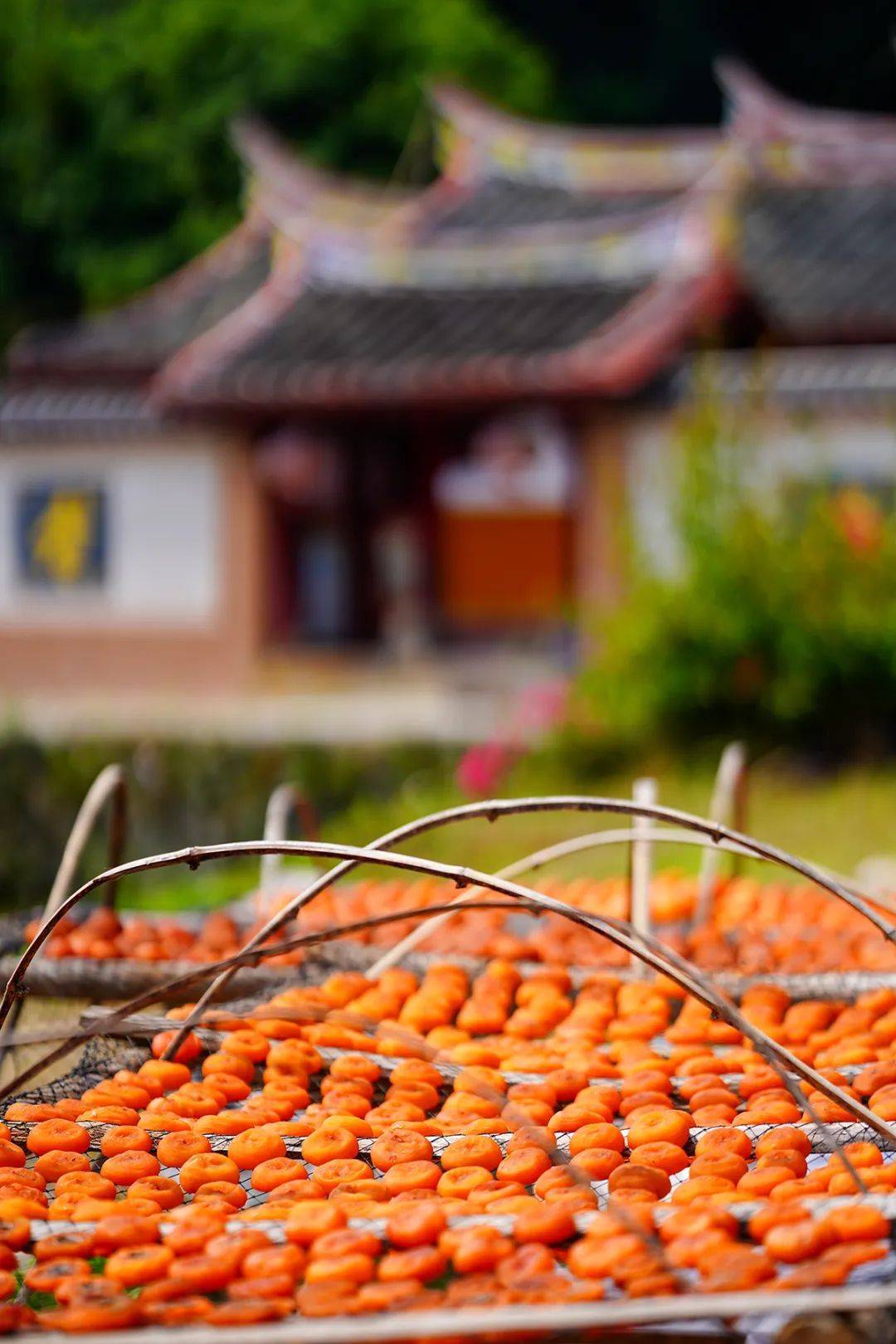 龙岩的乡民们晾晒柿子。