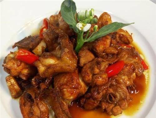第三步:在锅中倒入适量的油。油热后倒入姜、蒜、葱、花椒,简单拌匀,再倒入鸡块。待鸡肉变金黄后,将汁倒入碗中加入两勺半糖,快速拌匀,盖上锅盖煮一会,待汁收尽,倒入预热好的锅中。放入一个好的锅中,然后将鸡肉煮一会儿后,放入罗勒20秒。