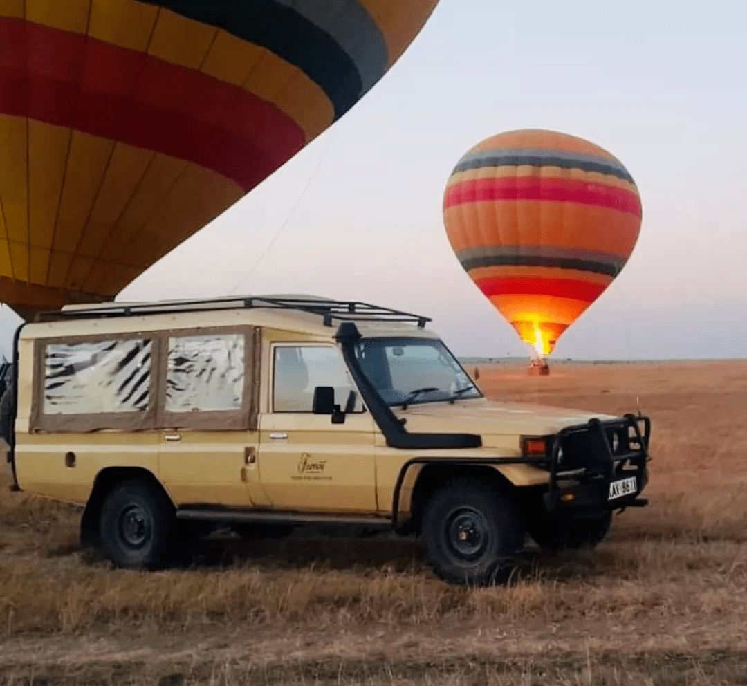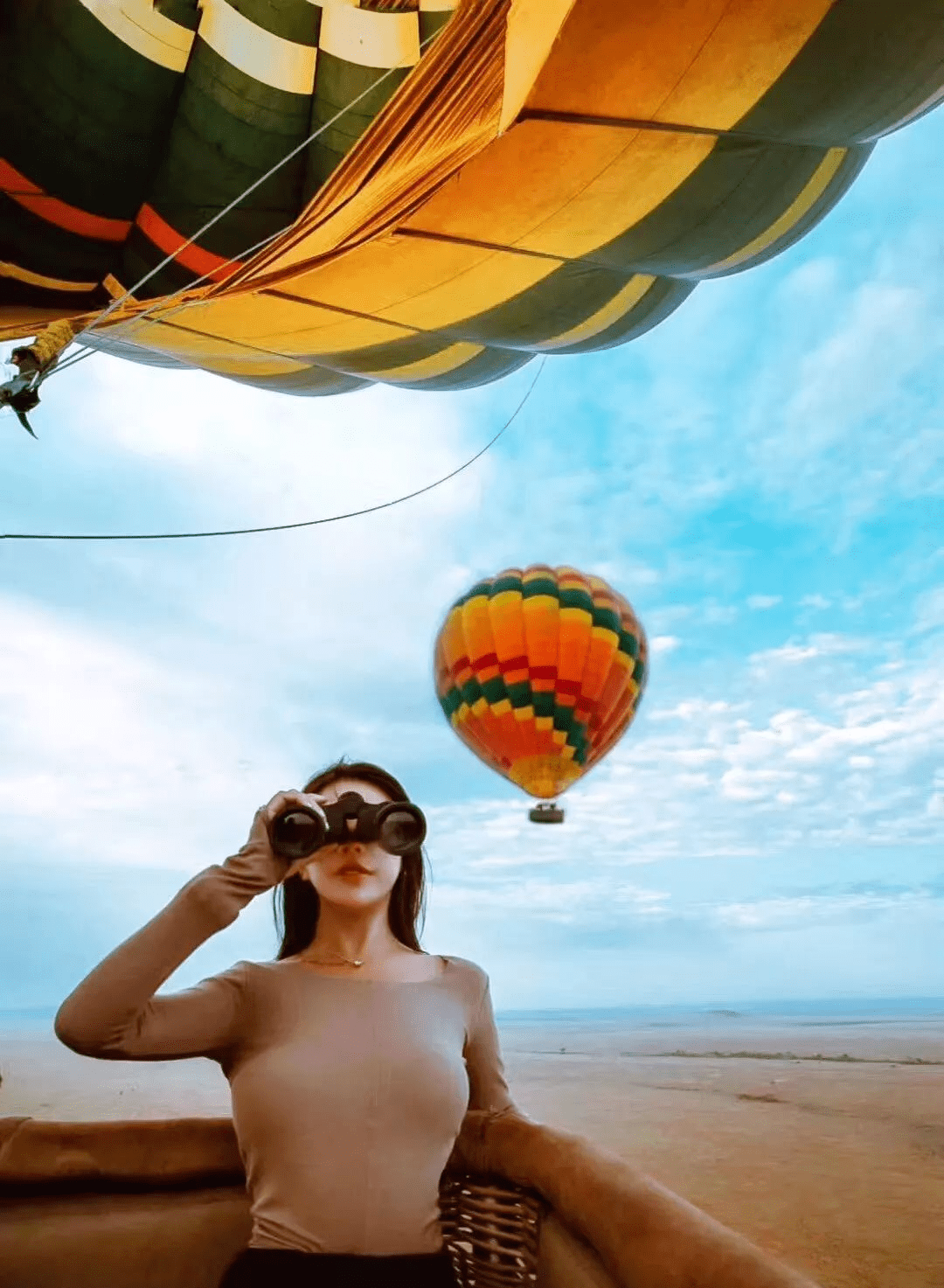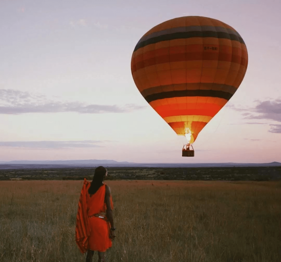 下了热气球就开始撒欢儿。热气球降落在马拉河畔