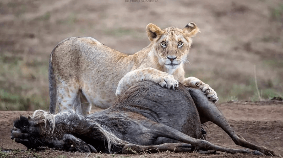 当吉普车驶入马赛马拉,你会发现周遭的景象万分熟悉,和纪录片《动物世界》所呈现的景象一模一样,这里是随处有狮子豹子埋伏的草原,远处有雄健的斑马结队奔跑,另一边还有千千万万的角马渡河带起的浮土沙。