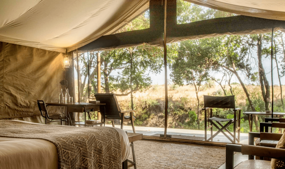 这家帐篷酒店可谓独具特色, 位于肯尼亚西南部与坦桑尼亚交接的马赛马拉野生动物保护区, 隐匿在Ntiakitiak River堤坝岸边的丛林之中, 每个帐篷都按照堂皇的非洲狩猎景点风格装修, 在帐篷露台和营火边享受黄昏时分以及当地特色餐食.