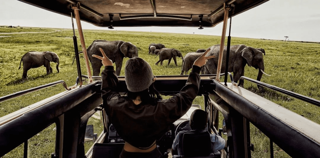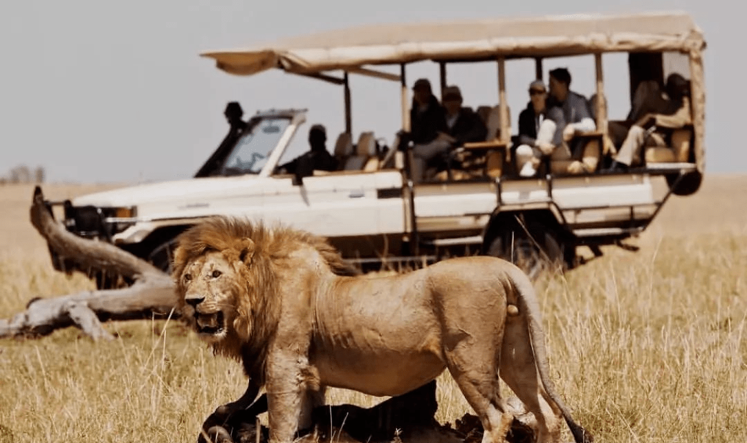 在园内游猎,和狮群、迅猛的猎豹、野牛以及好斗的犀牛