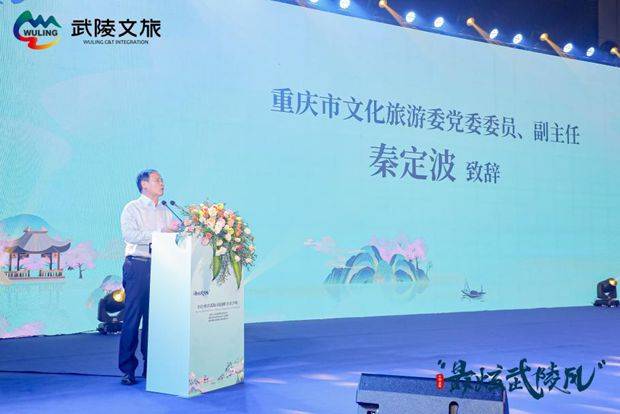 重庆市文化旅游委副主任秦定波现场致辞,他表示,重庆和湖南同处武陵山脉、长江经济带和“一带一路”重要节点,自古以来人文相亲、山水相连,在文化旅游业方面更是有着互补的资源优势和良好的协作平台基础。此次长沙之行,我们想诚邀湖南和长沙各地朋友来到山城重庆共享武陵山水诗情画意,同赏这片山水之城美丽之地,共同推动武陵山文化旅游高质量发展。