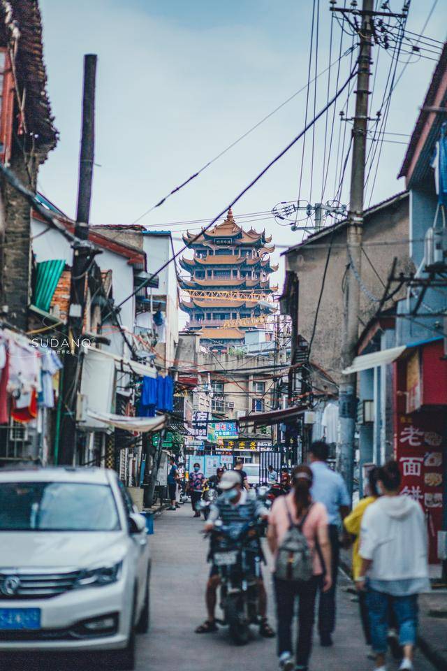 我依旧记得我第一次走进得胜桥的意外收获——突然转首,黄鹤楼赫然出现眼前,它与巷子里的烟火气形成了鲜明的对比。