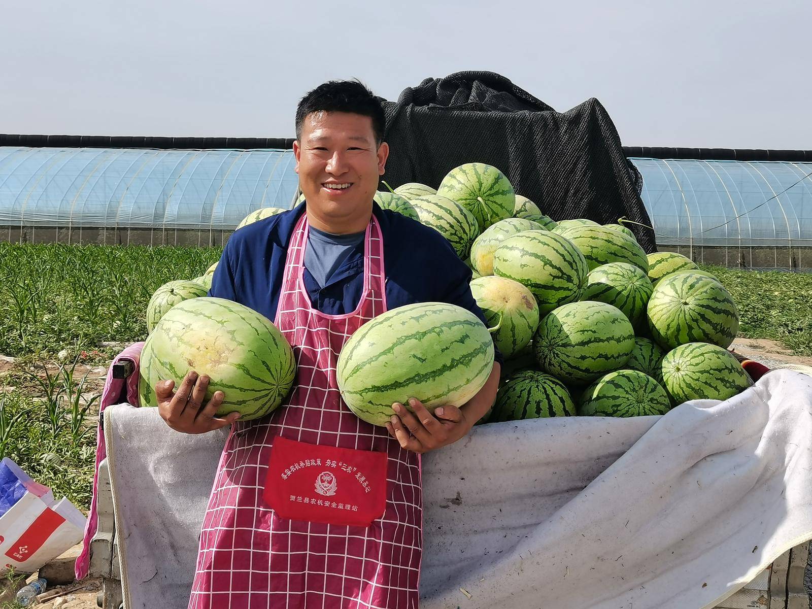 “这个西瓜,个儿大口感好,上市还早!”7月5日,位于贺兰县南梁台子铁东村马建彪的西瓜园开园了,他兴奋地告诉记者:“瓜贩子们等着抢货呢!”