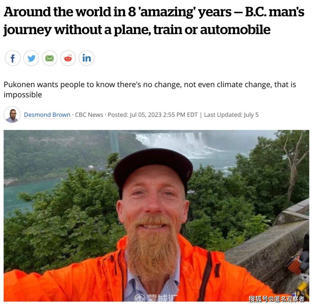Pukonen 于 2015 年 7 月乘独木舟离开多伦多。2023 年 7 月 2 日,他骑自行车穿越尼亚加拉瀑布美国边境重返加拿大多伦多!